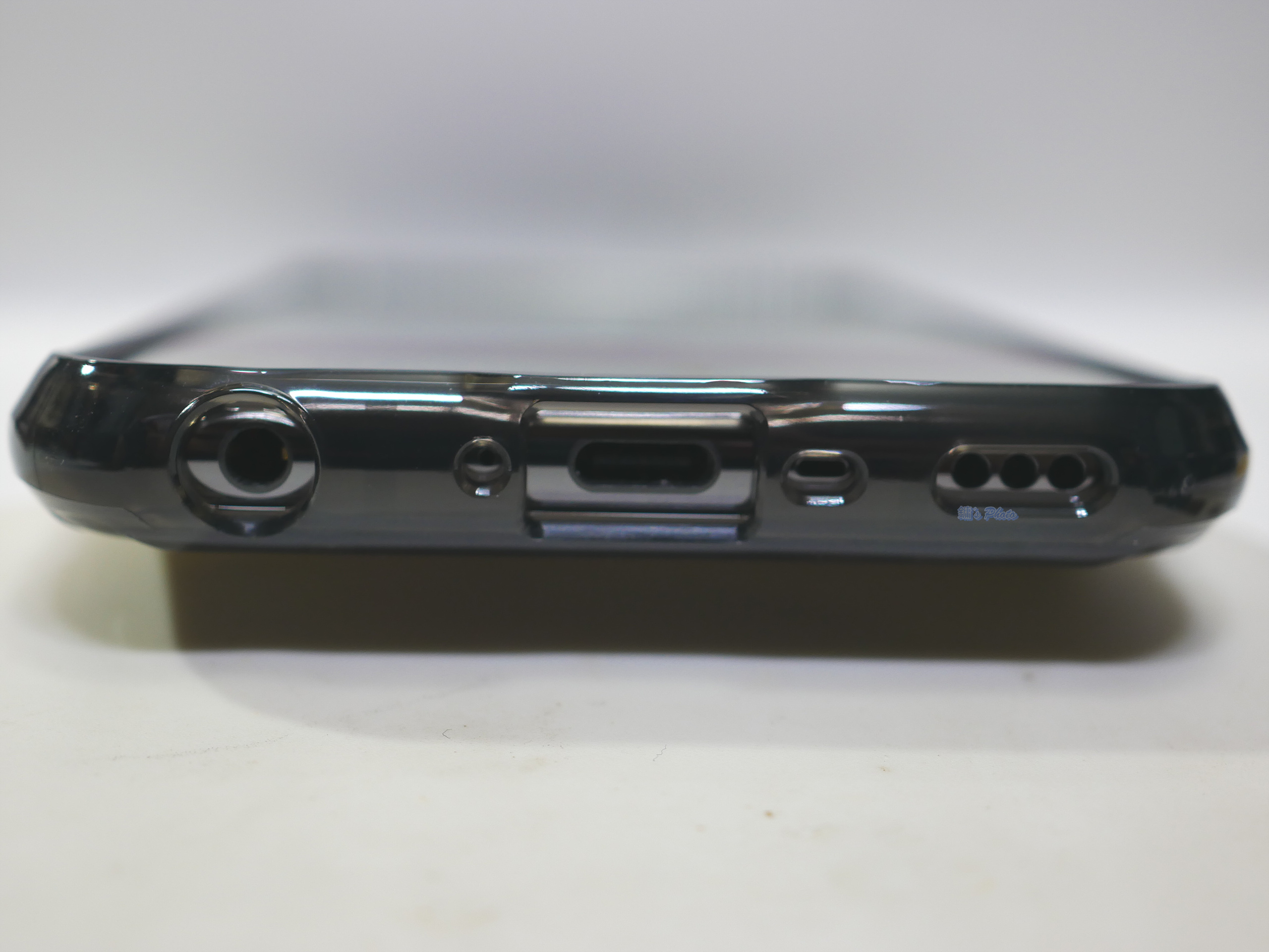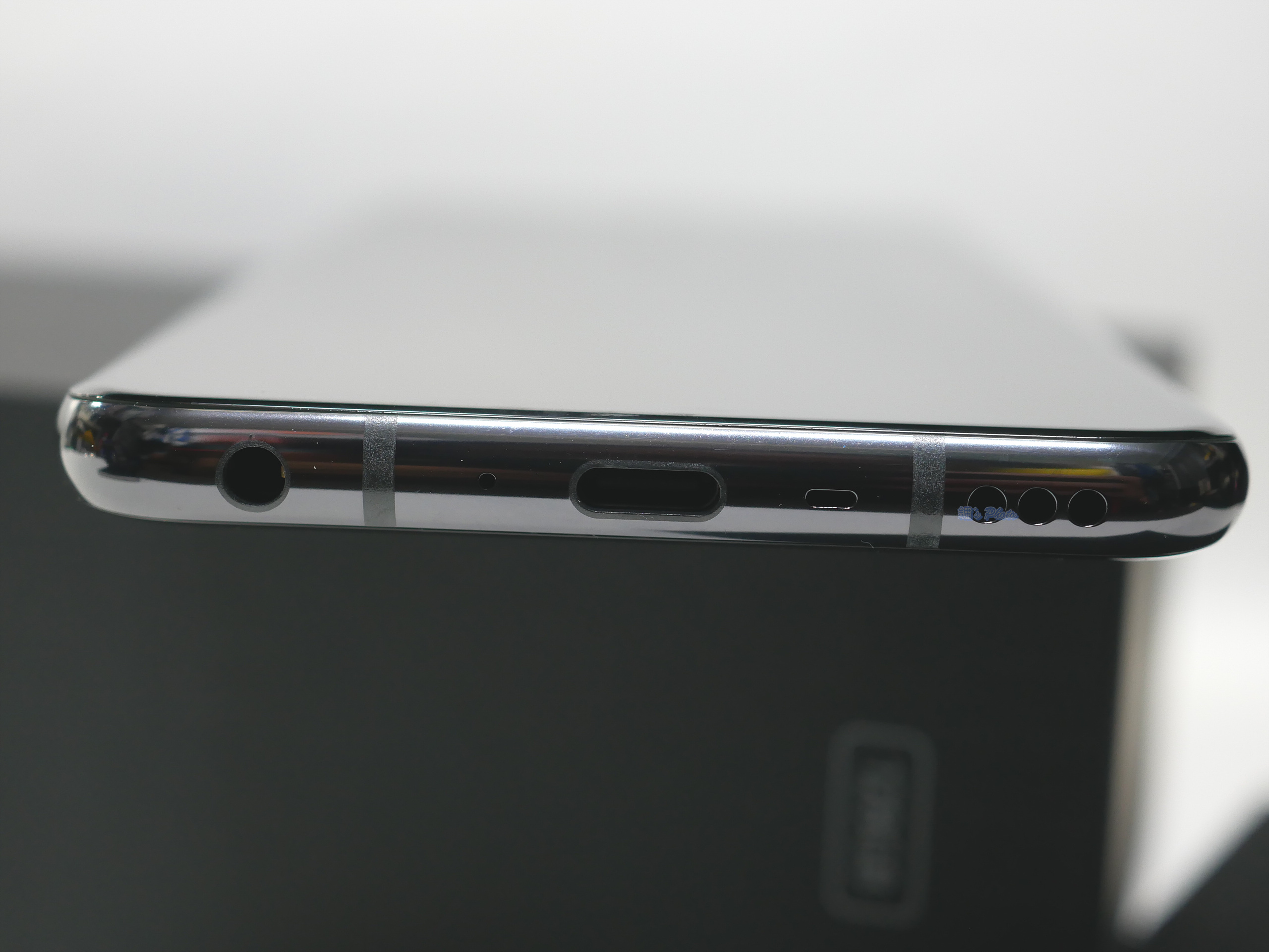 하단부에는 USB-C 단자, 스피커, 수화부, 3.5파이 이어폰 단자