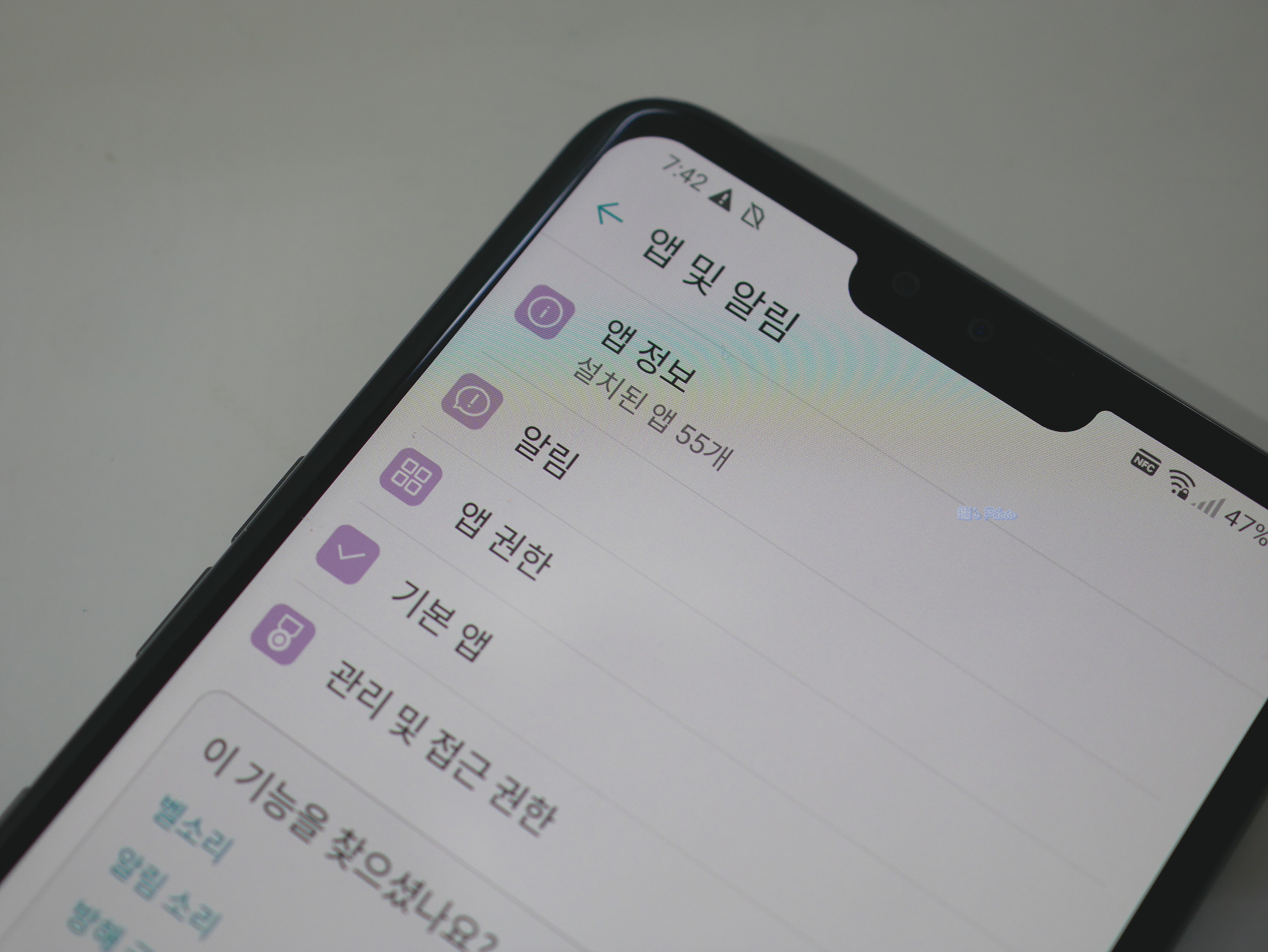 인식하기 쉽게 전면 카메라 부분과 단차 사진
