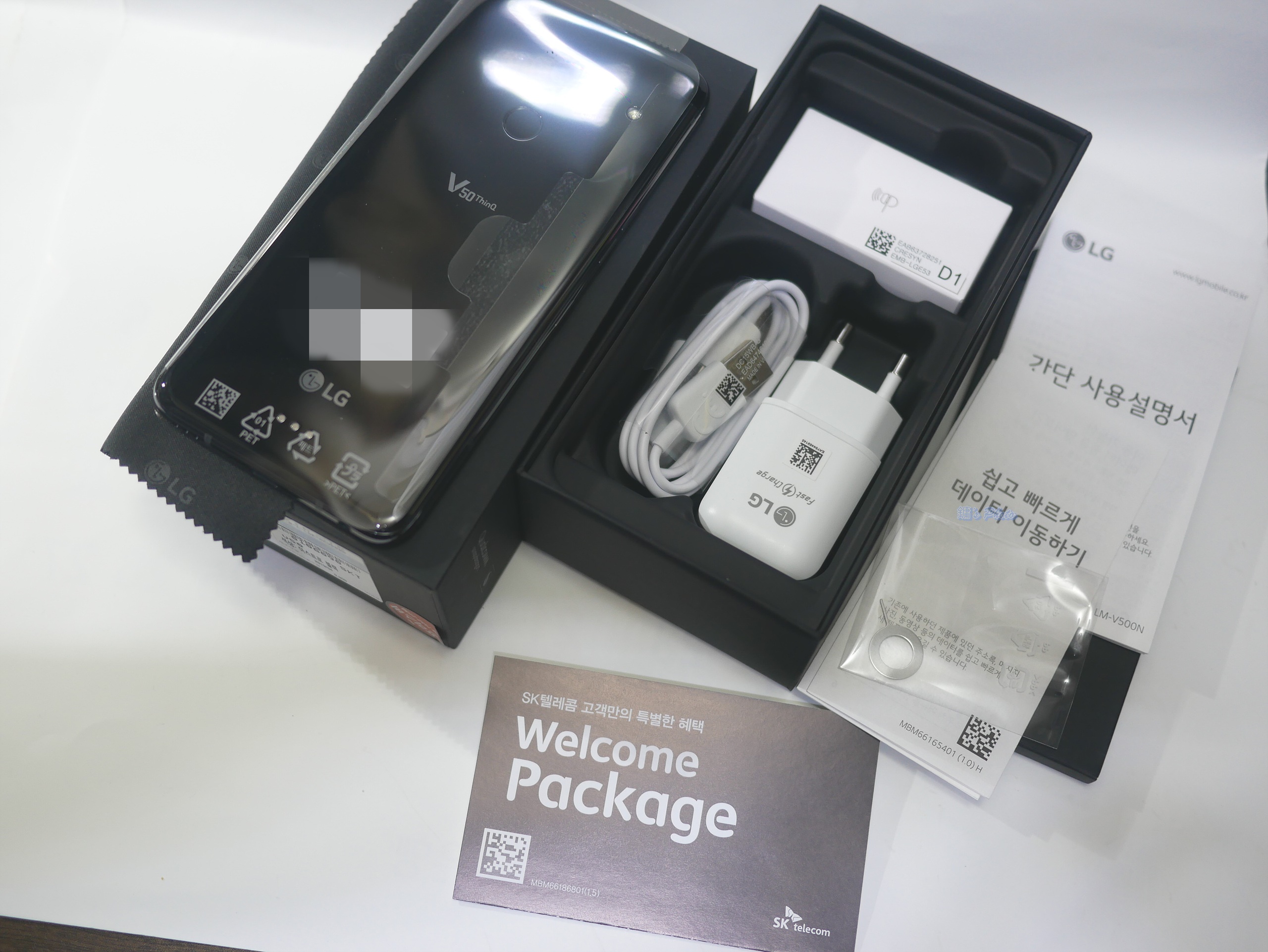 뚜껑을 열어보니 이제 LG 스마트폰의 트레이드 마크인 검은색 천으로 V50을 가리고 있음