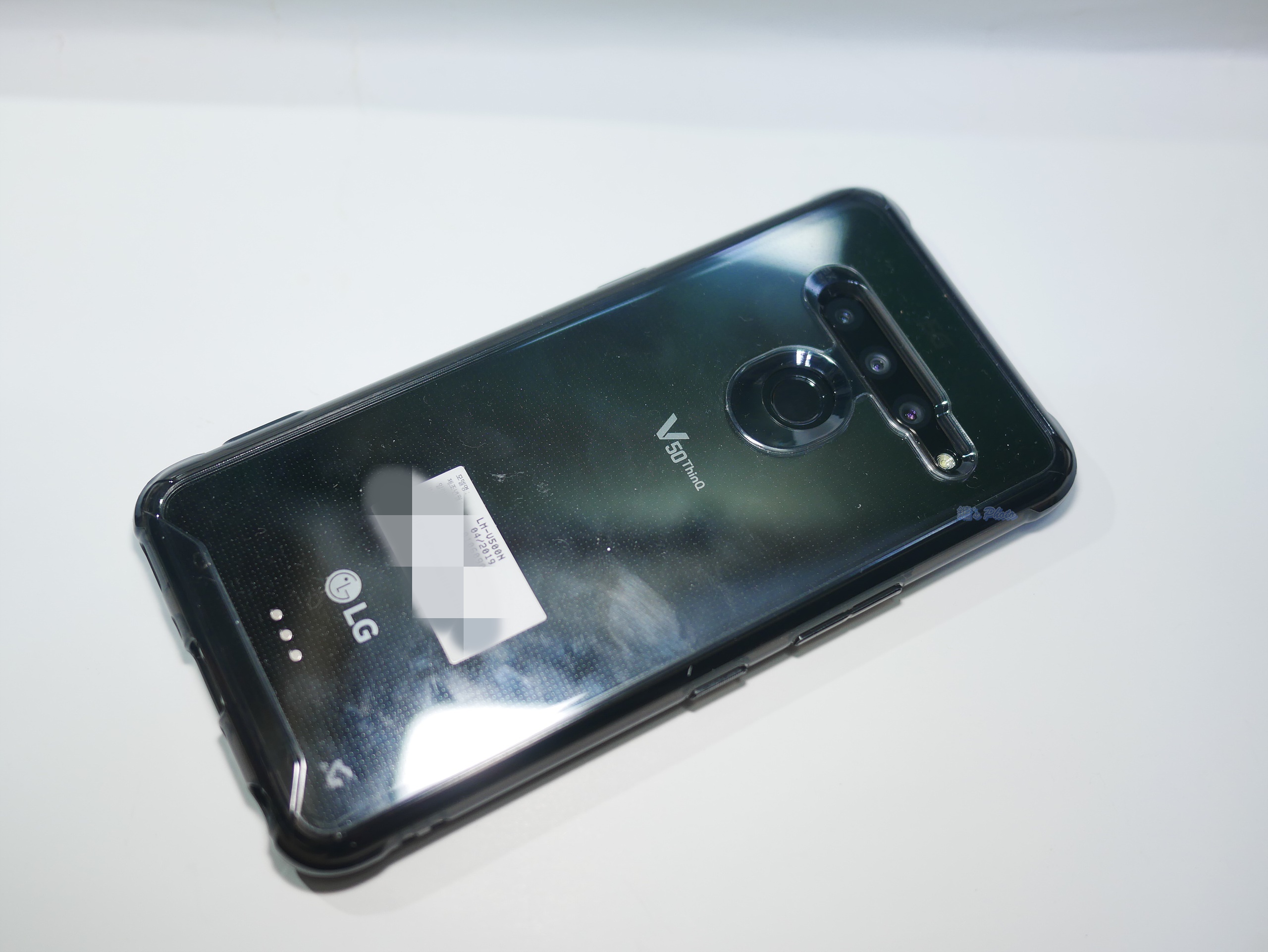 V50 뒷면, 카툭튀가 없다는 게 무척 맘에 드나, 껍데기를 안쓰고 생폰 쓸 경우 카메라 렌즈 흠집으로 인한 화질저하 유의
