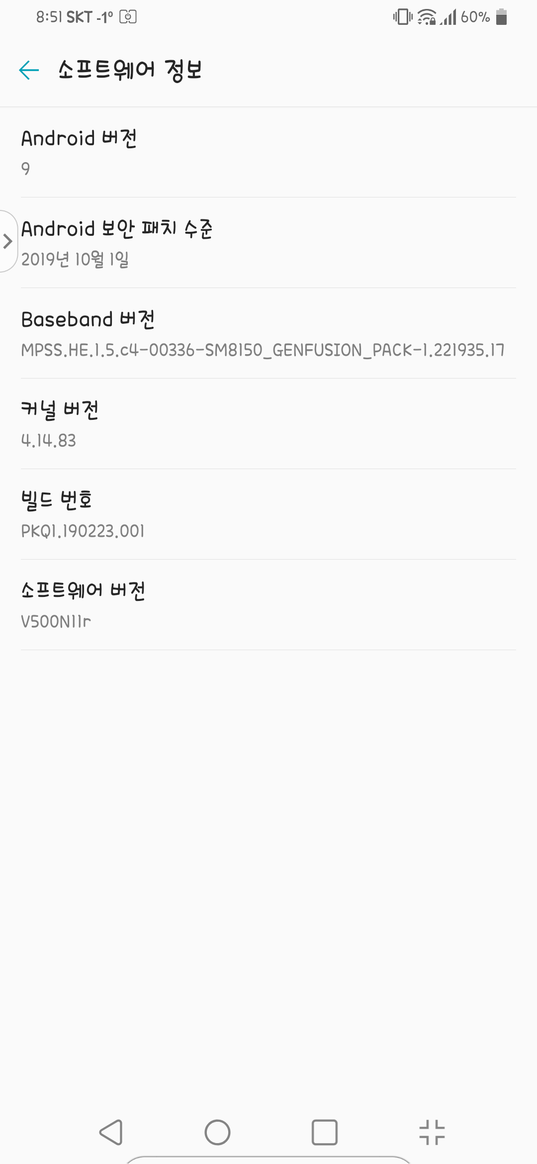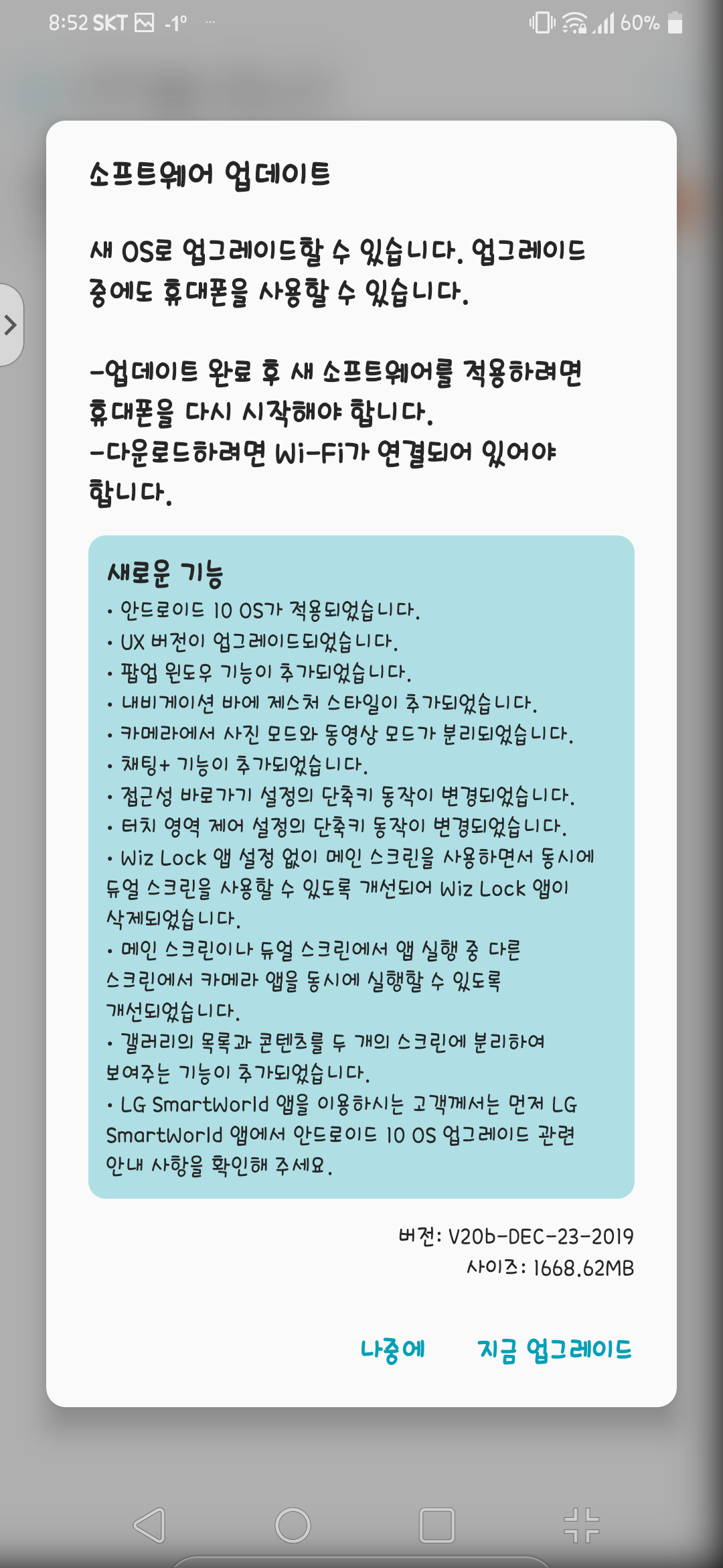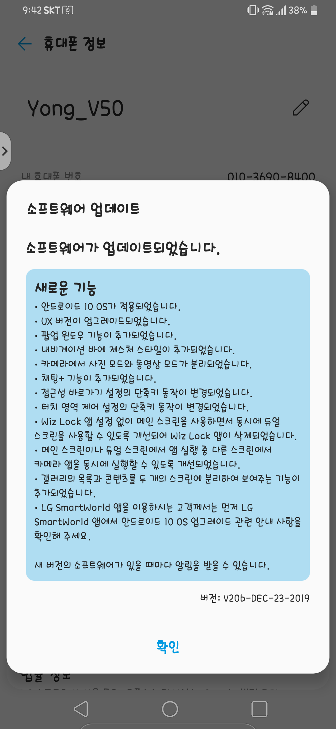 이미 lg Q9 one 으로 안드 10을 써보는 중에 v50도