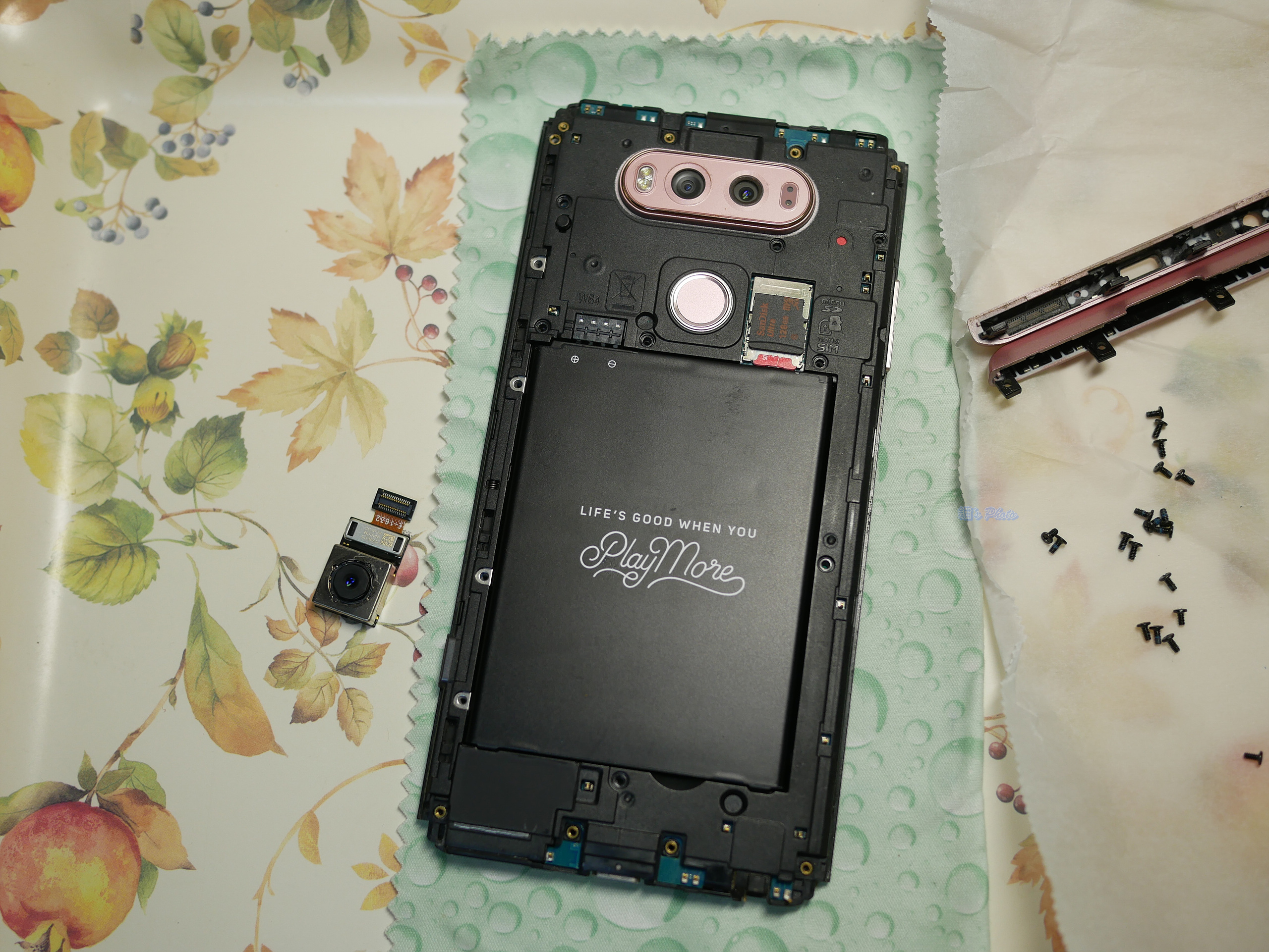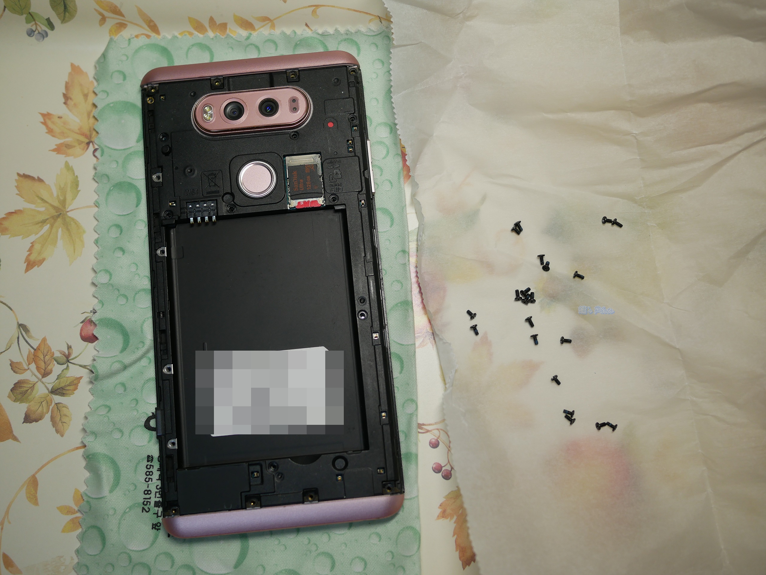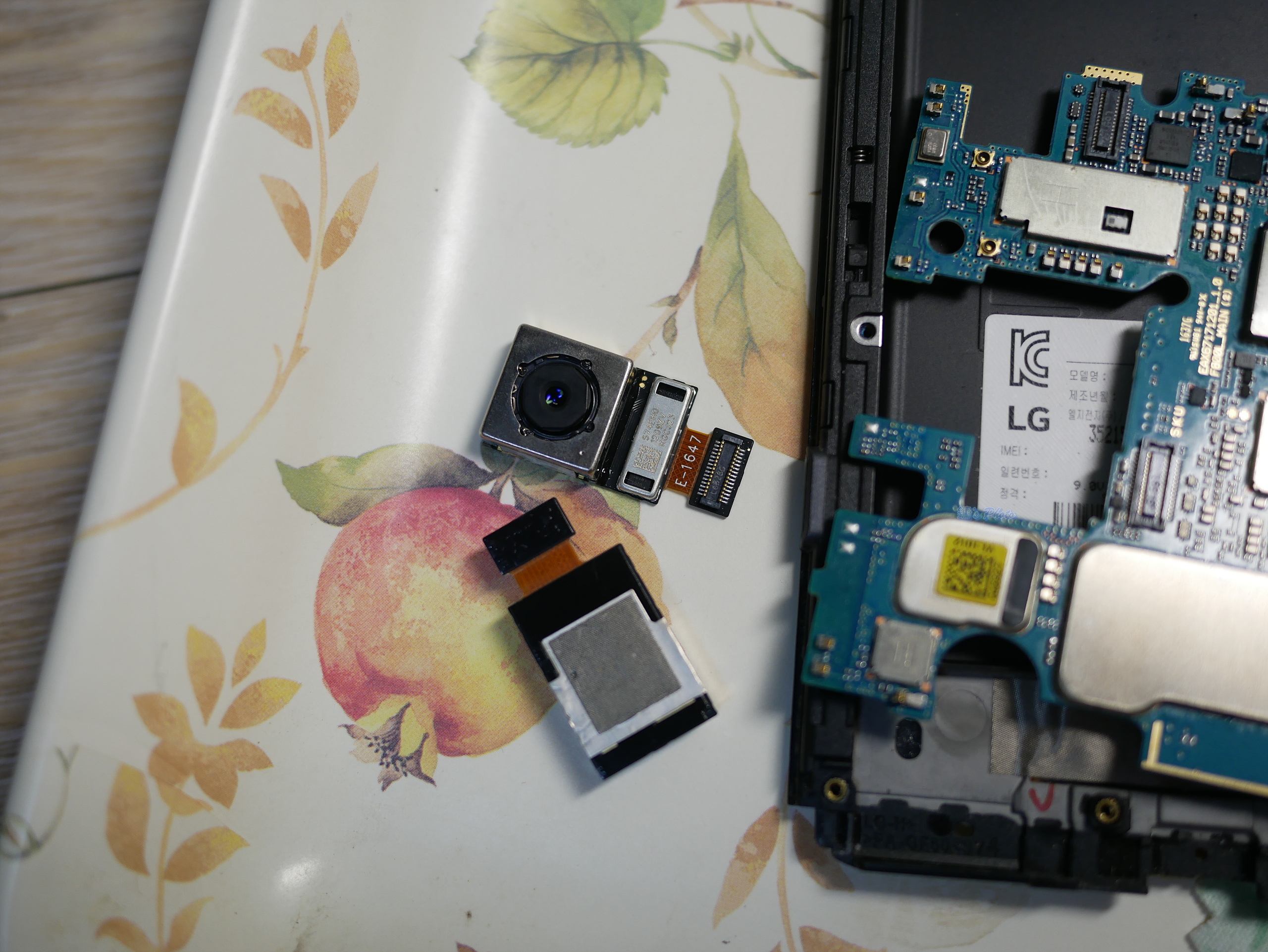 V20 후면 메인카메라 결과물에 까만 멍 같은 게 남아서 부품용 폰을 구해 카메라 모듈 교체로 자가수리 완료