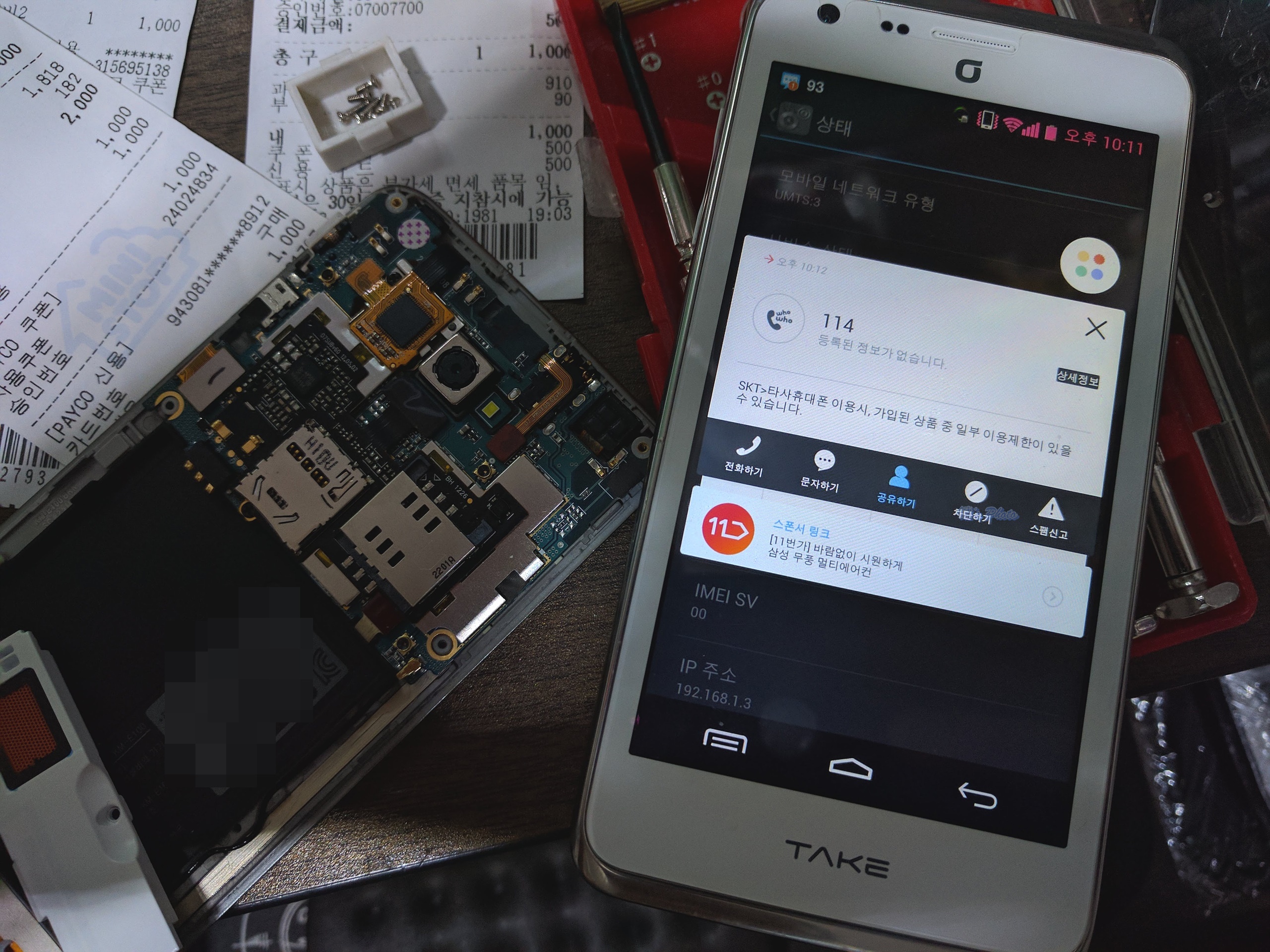 유심슬롯이 고장난 테티이, 역시 부품용으로 있던 기기에서 유심 모듈 이식
