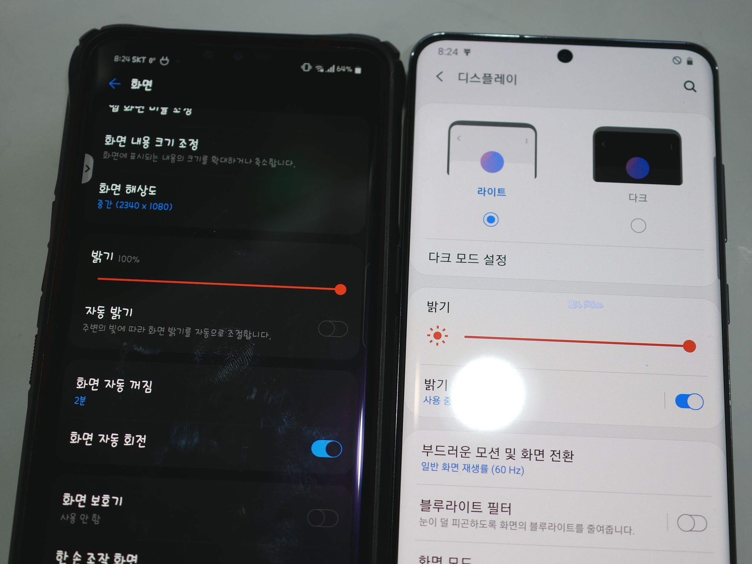 V20의 ips 패널과도 비교, 밝기 최대, 색감 대충 맞추고, V20, V50, S20 ultra 화면 비교샷