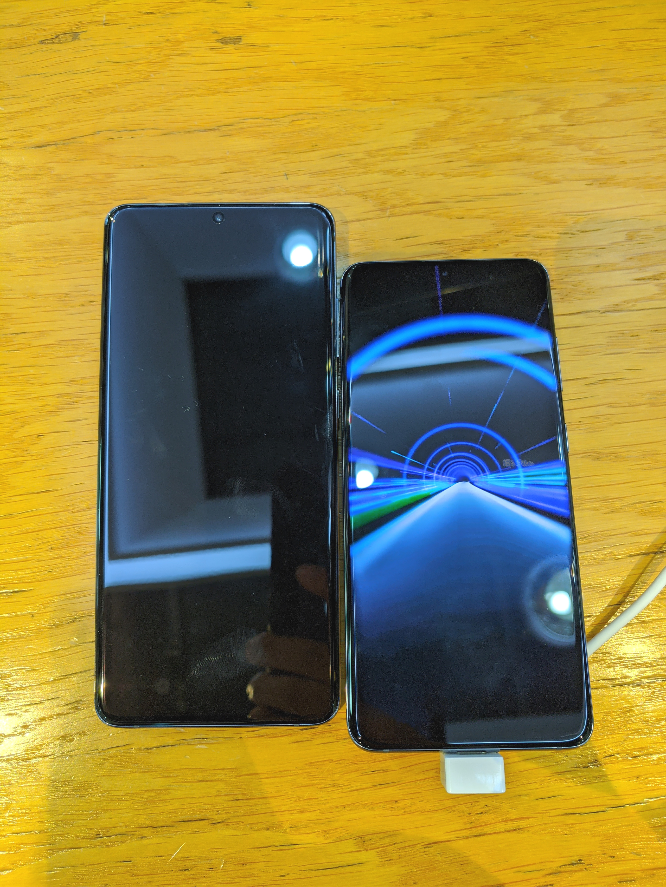 S50 울트라 V50 비교샷, 확실히 이렇게 보면 노치나 펀치홀 신경 안써도 베젤 면적 작은 울트라가 낫긴 함